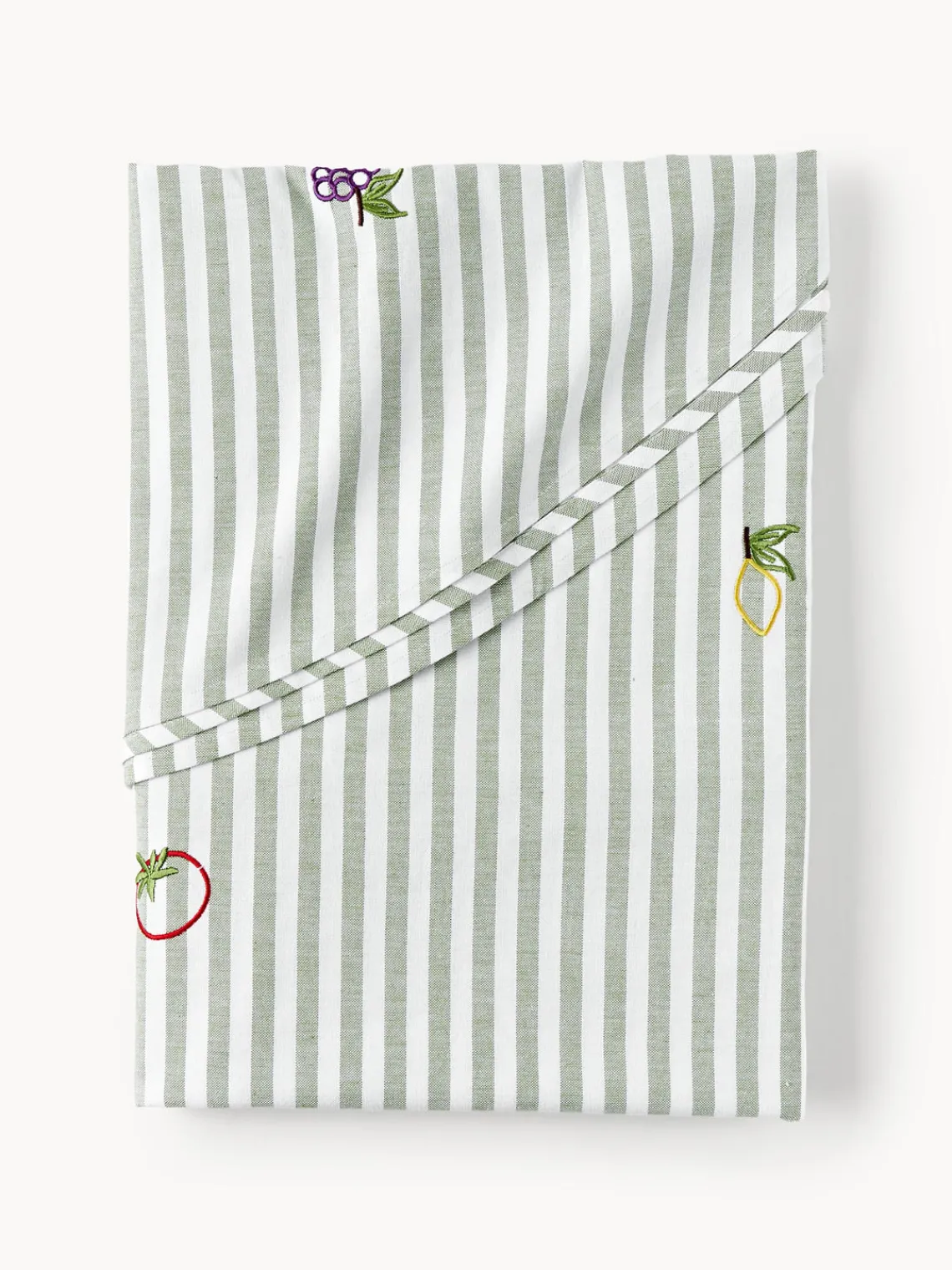 Westwing Collection Mantel redondo a rayas con motivos bordados Melony^ Manteles|Manteles