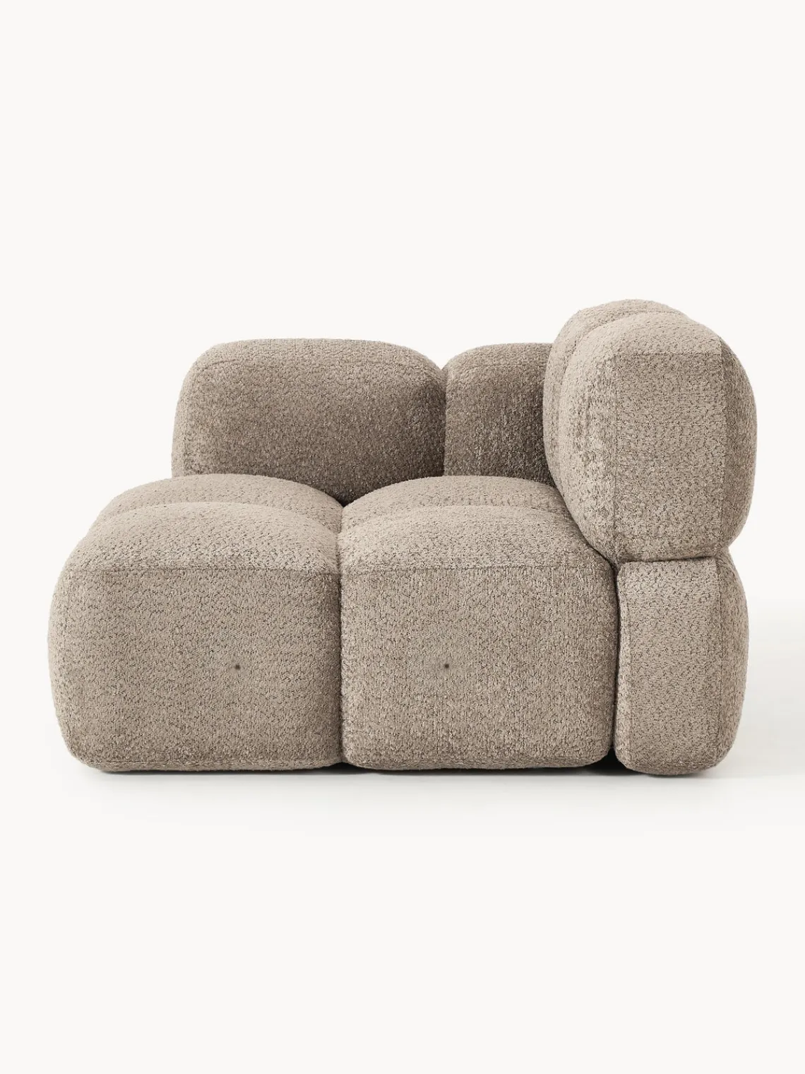 La chaise longue está en el lado izquierdo cuando estás frente al sofá.