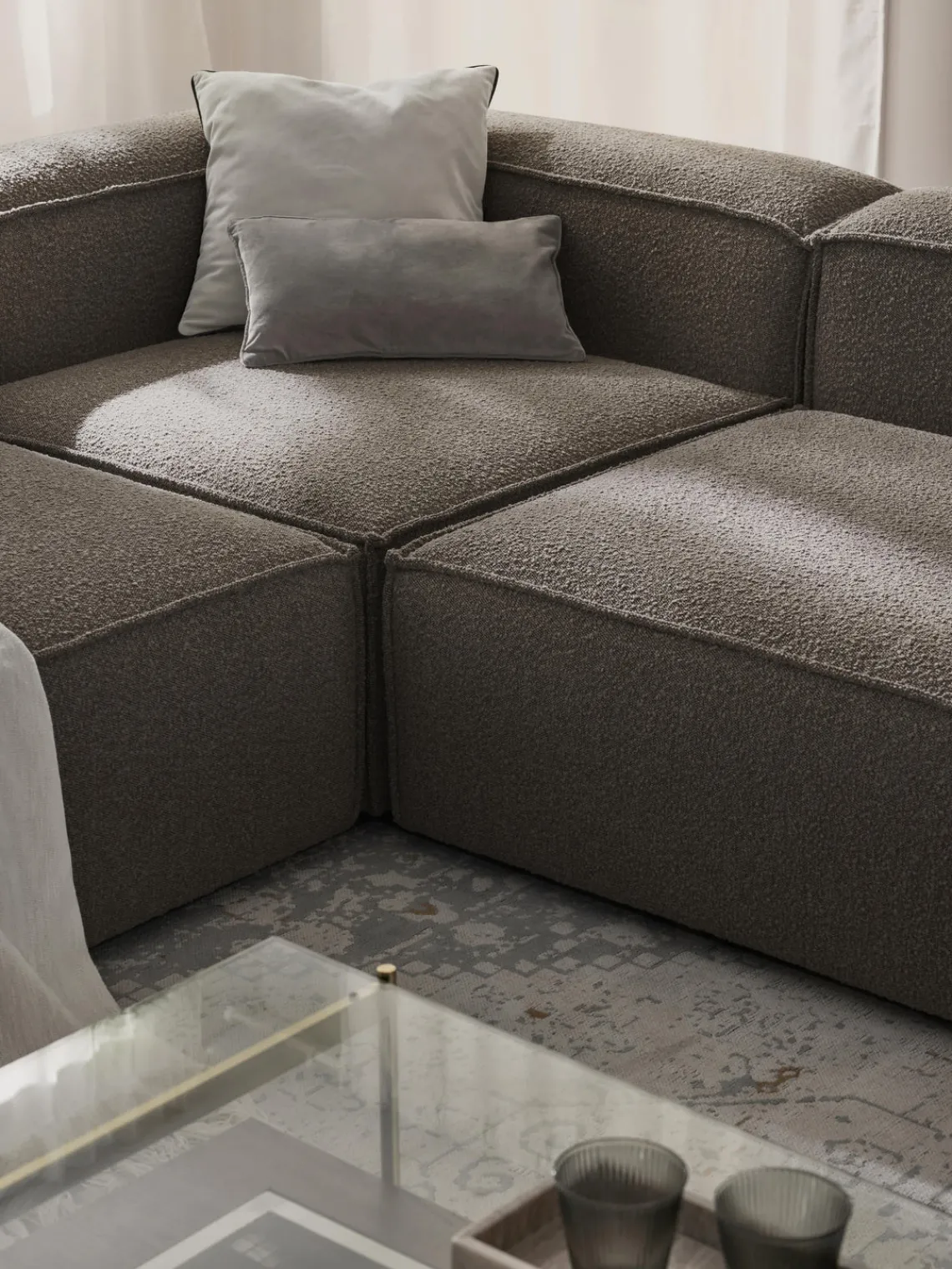 También puedes descubrir otros productos a juego en nuestra gama que se adaptan perfectamente a LENNON: la consola LANA no solo ofrece espacio de almacenamiento adicional, sino que también es un elemento decorativo que se adapta exactamente a las dimensiones de LENNON. El taburete LENNON con bandeja de madera se puede utilizar de forma flexible como mesa de centro o como elemento intermedio en el sofá, para conseguir un aspecto elegante y espacio de almacenamiento práctico. No te olvides del complemento perfecto: cojines de sofá en todos los tejidos y colores de LENNON para un look perfecto, ya sea uniforme o en un estilo mix & match.