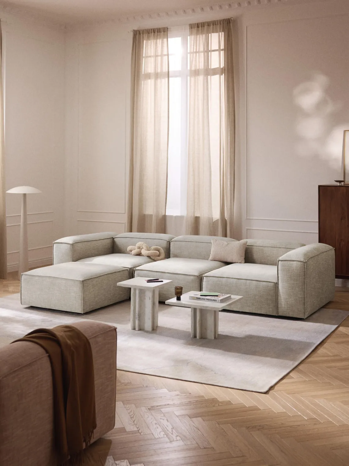 También puedes descubrir otros productos a juego en nuestra gama que se adaptan perfectamente a LENNON: la consola LANA no solo ofrece espacio de almacenamiento adicional, sino que también es un elemento decorativo que se adapta exactamente a las dimensiones de LENNON. El taburete LENNON con bandeja de madera se puede utilizar de forma flexible como mesa de centro o como elemento intermedio en el sofá, para conseguir un aspecto elegante y espacio de almacenamiento práctico. No te olvides del complemento perfecto: cojines de sofá en todos los tejidos y colores de LENNON para un look perfecto, ya sea uniforme o en un estilo mix & match.