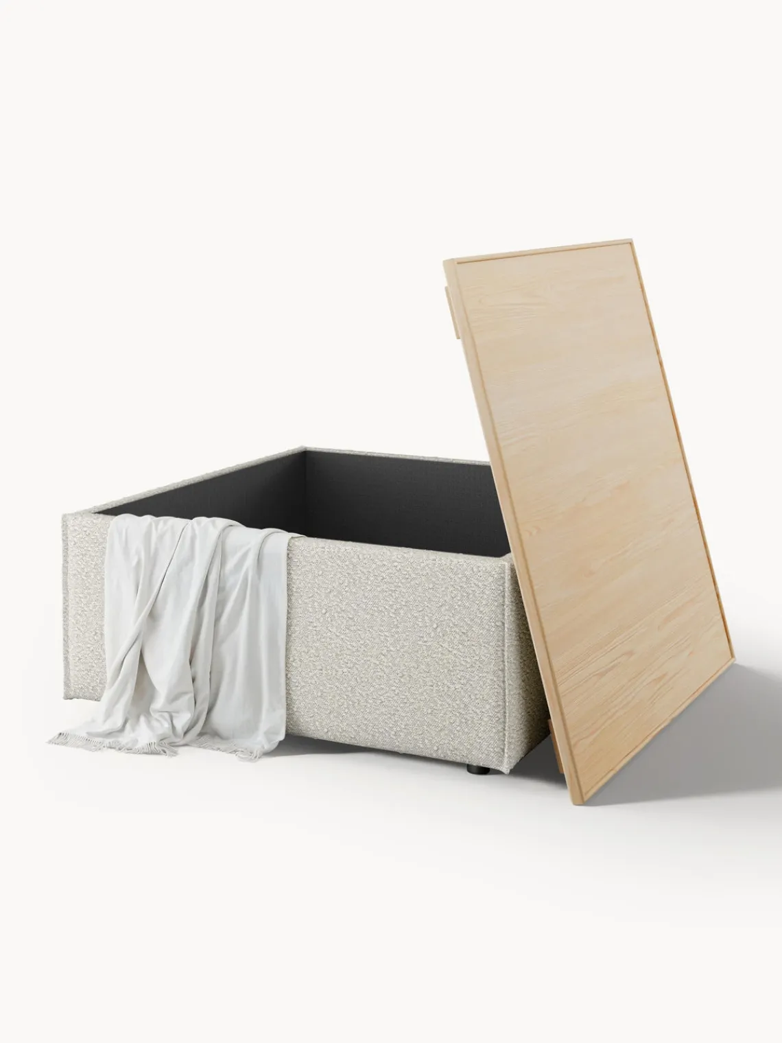– Tapizado en tejido bouclé muy duradero y de fácil cuidado, disponible en colores diferentes