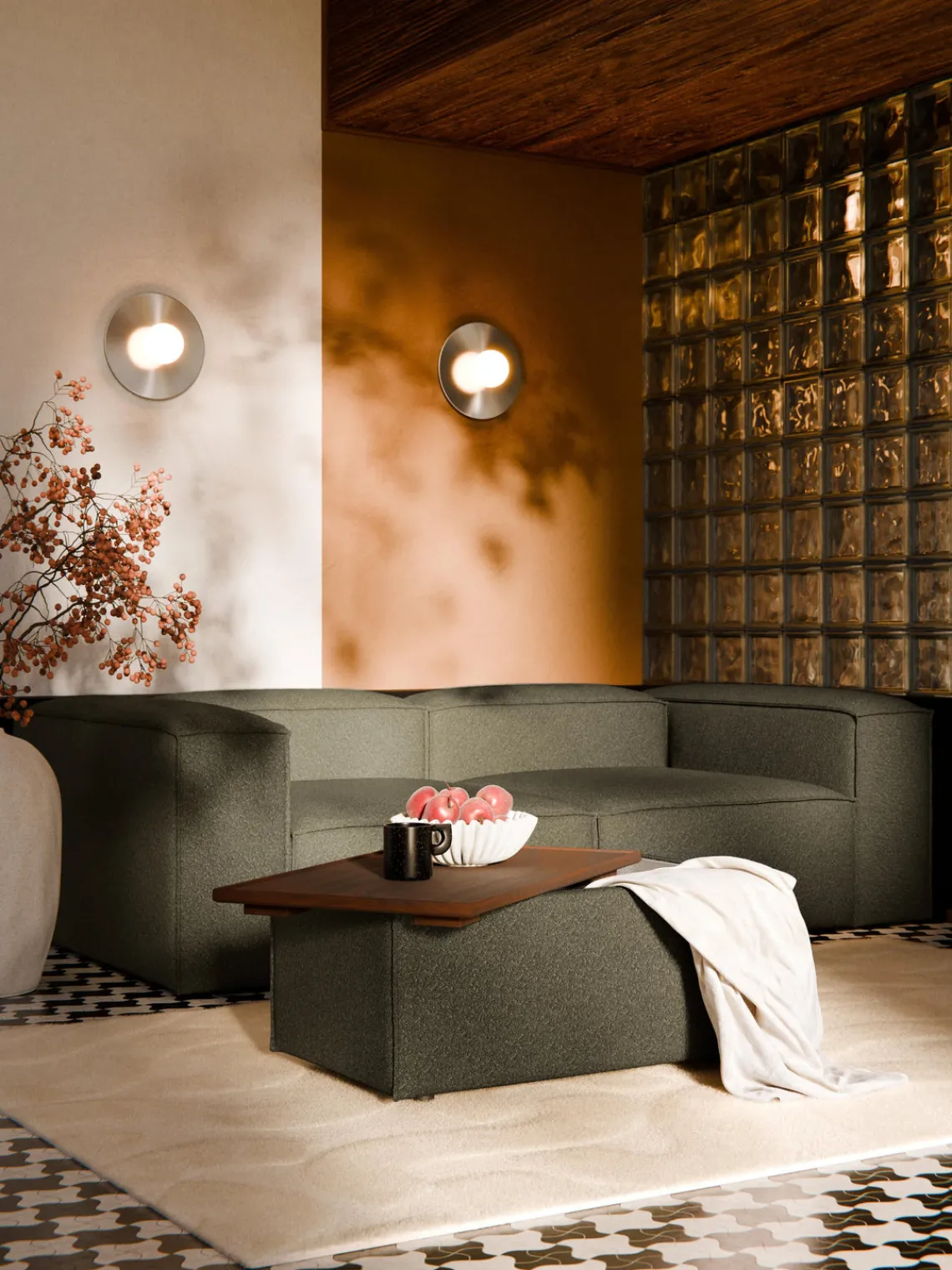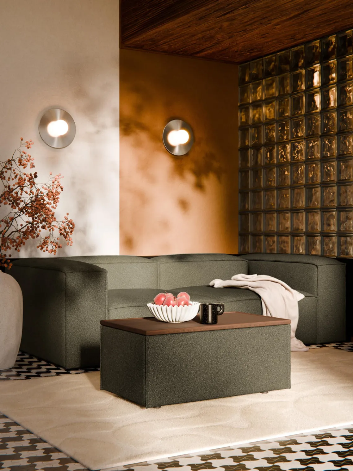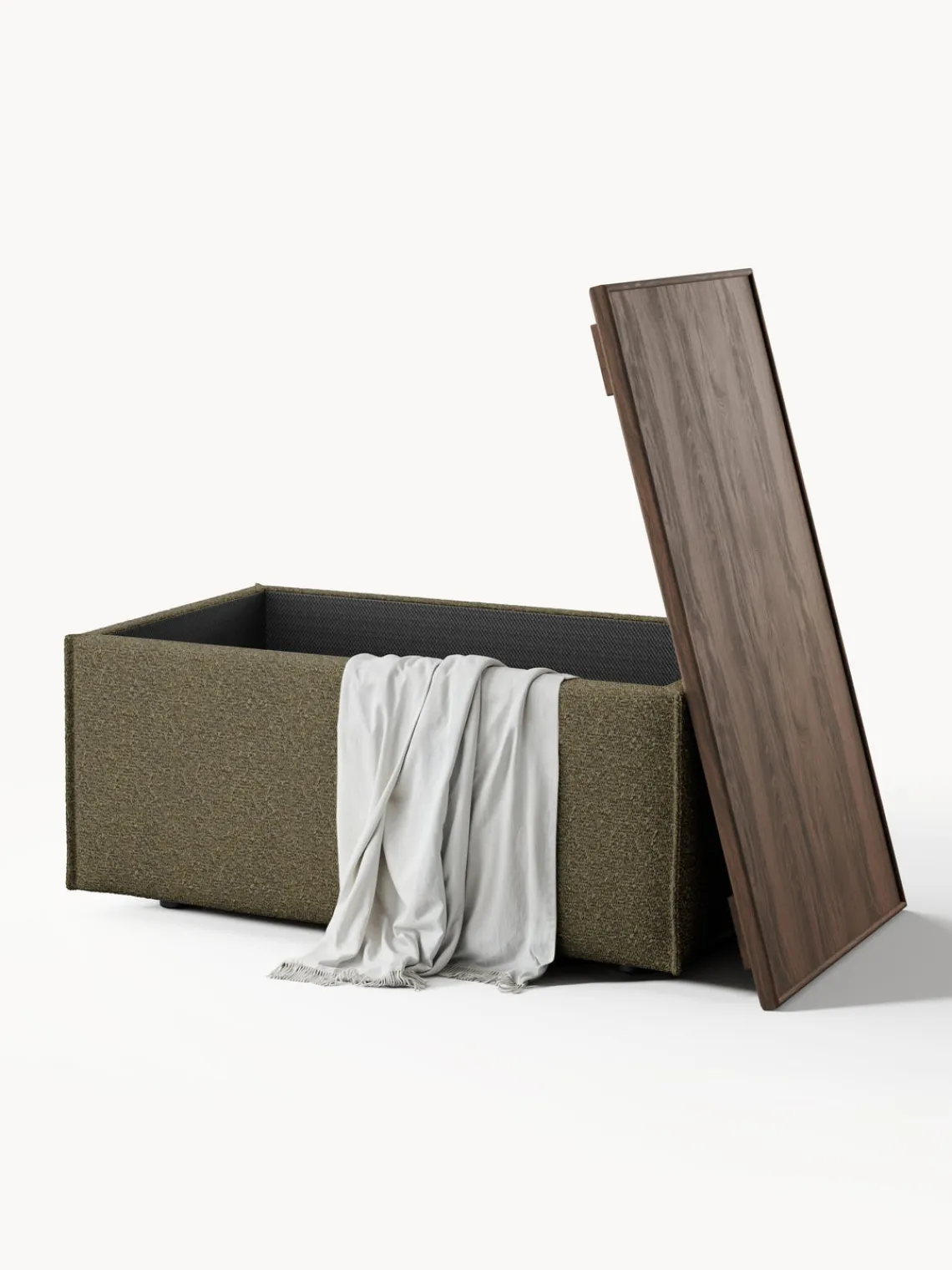Westwing Collection Reposapiés puf en tejido bouclé con espacio de almacenamiento Lennon