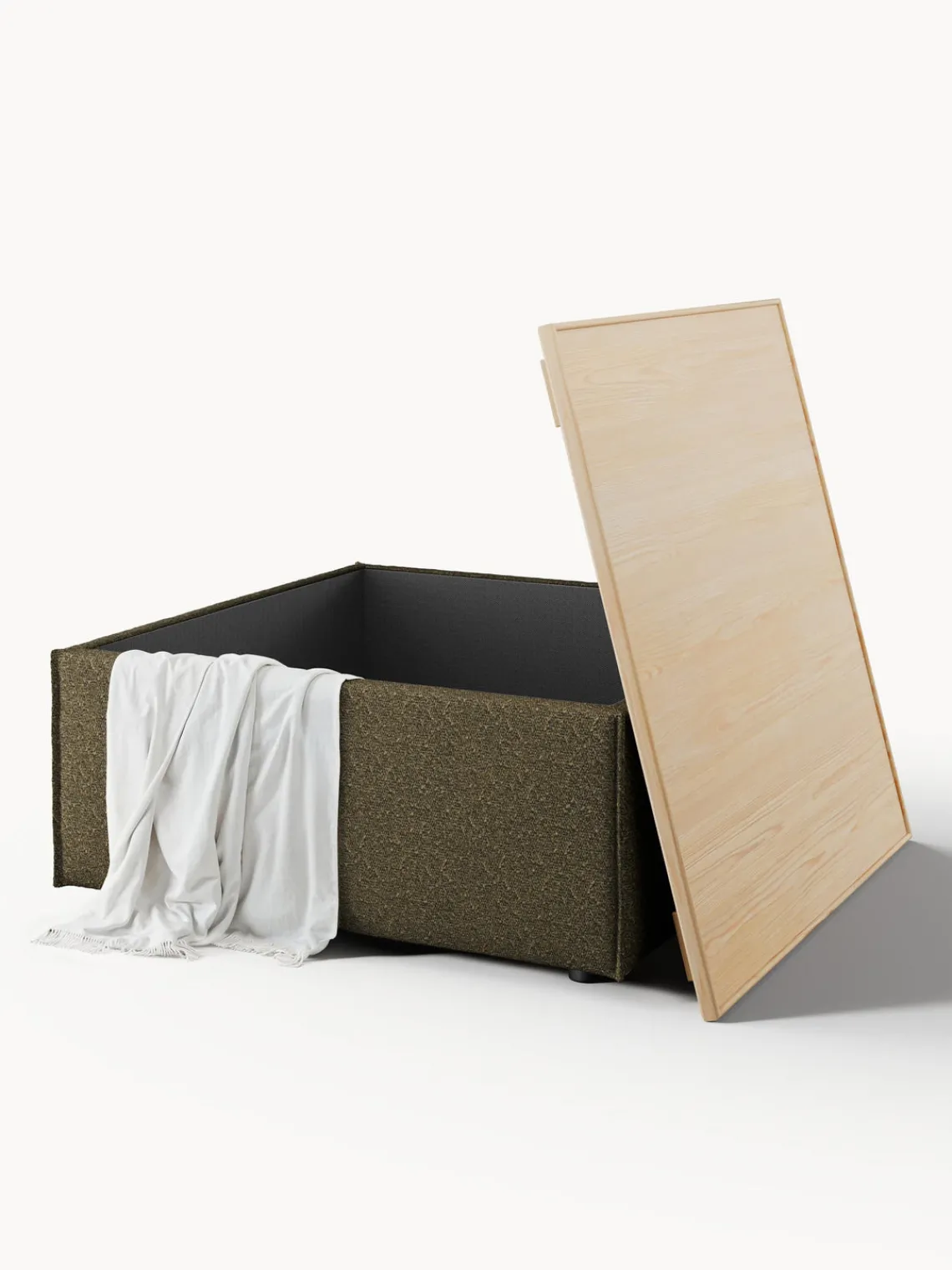 – Tapizado en tejido bouclé muy duradero y de fácil cuidado, disponible en colores diferentes