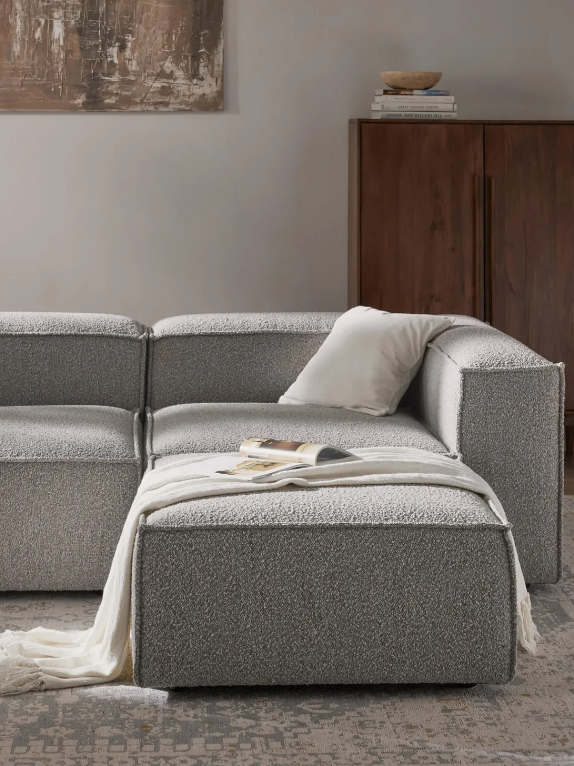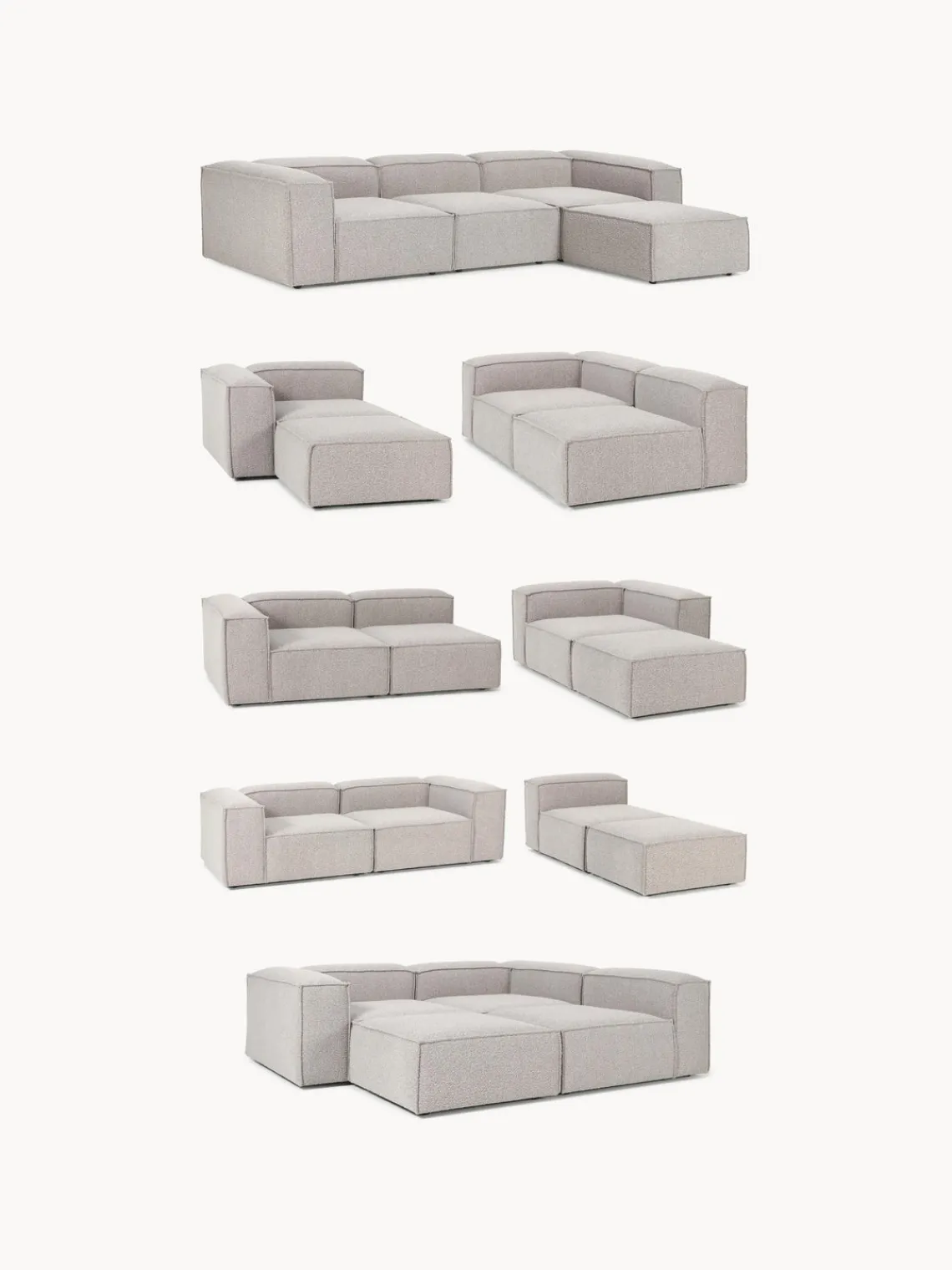 También puedes descubrir otros productos a juego en nuestra gama que se adaptan perfectamente a LENNON: la consola LANA no solo ofrece espacio de almacenamiento adicional, sino que también es un elemento decorativo que se adapta exactamente a las dimensiones de LENNON. El taburete LENNON con bandeja de madera se puede utilizar de forma flexible como mesa de centro o como elemento intermedio en el sofá, para conseguir un aspecto elegante y espacio de almacenamiento práctico. No te olvides del complemento perfecto: cojines de sofá en todos los tejidos y colores de LENNON para un look perfecto, ya sea uniforme o en un estilo mix & match.