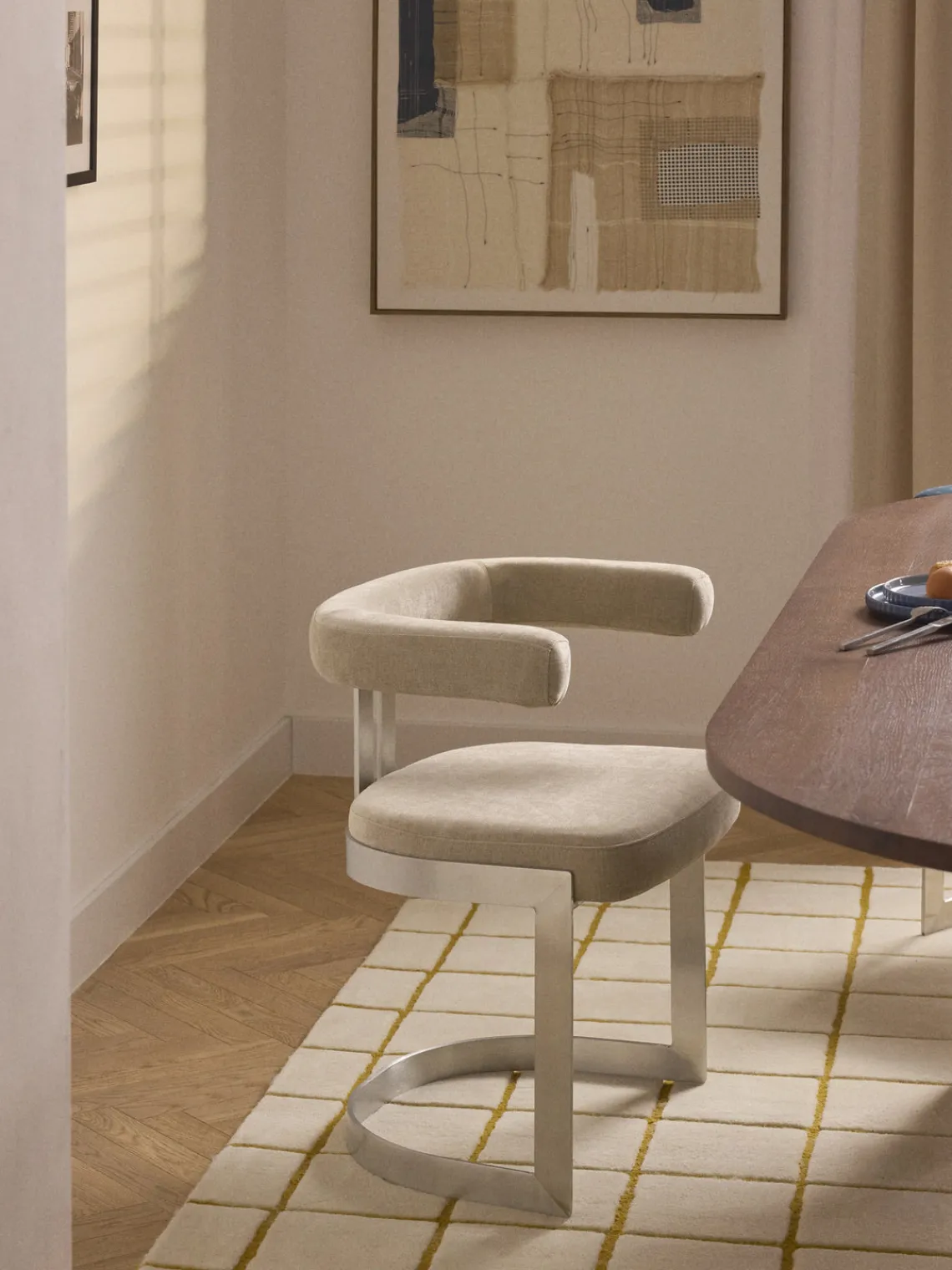 | Color | Tejido beige, plateado |