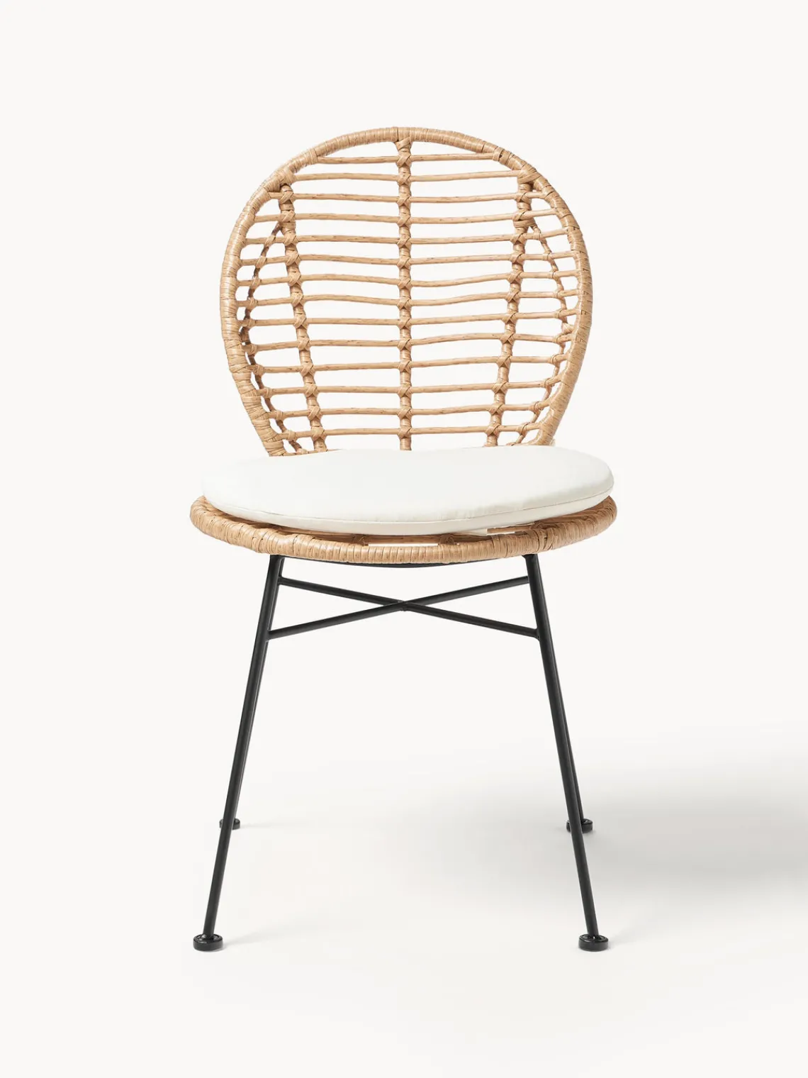 Las sillas Cordula se caracterizan por su aspecto natural y la forma redonda del respaldo y el asiento. Su aspecto encaja a la perfección con el estilo boho. Una silla de ratán polivinílico no sólo tiene la ventaja de ser muy robusta y resistente a la intemperie, sino que además el mimbre de su estructura le aporta mucha naturalidad. Por eso, es ideal como silla de jardín, por ejemplo, acompañada de una mesa de madera.