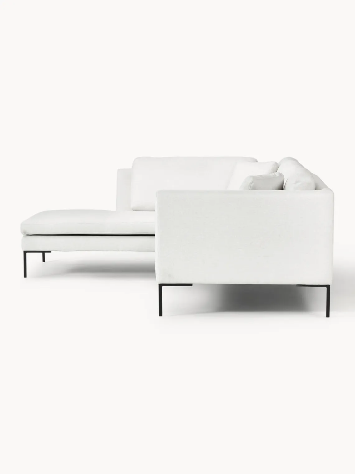 La chaise longue está en el lado izquierdo cuando estás frente al sofá.