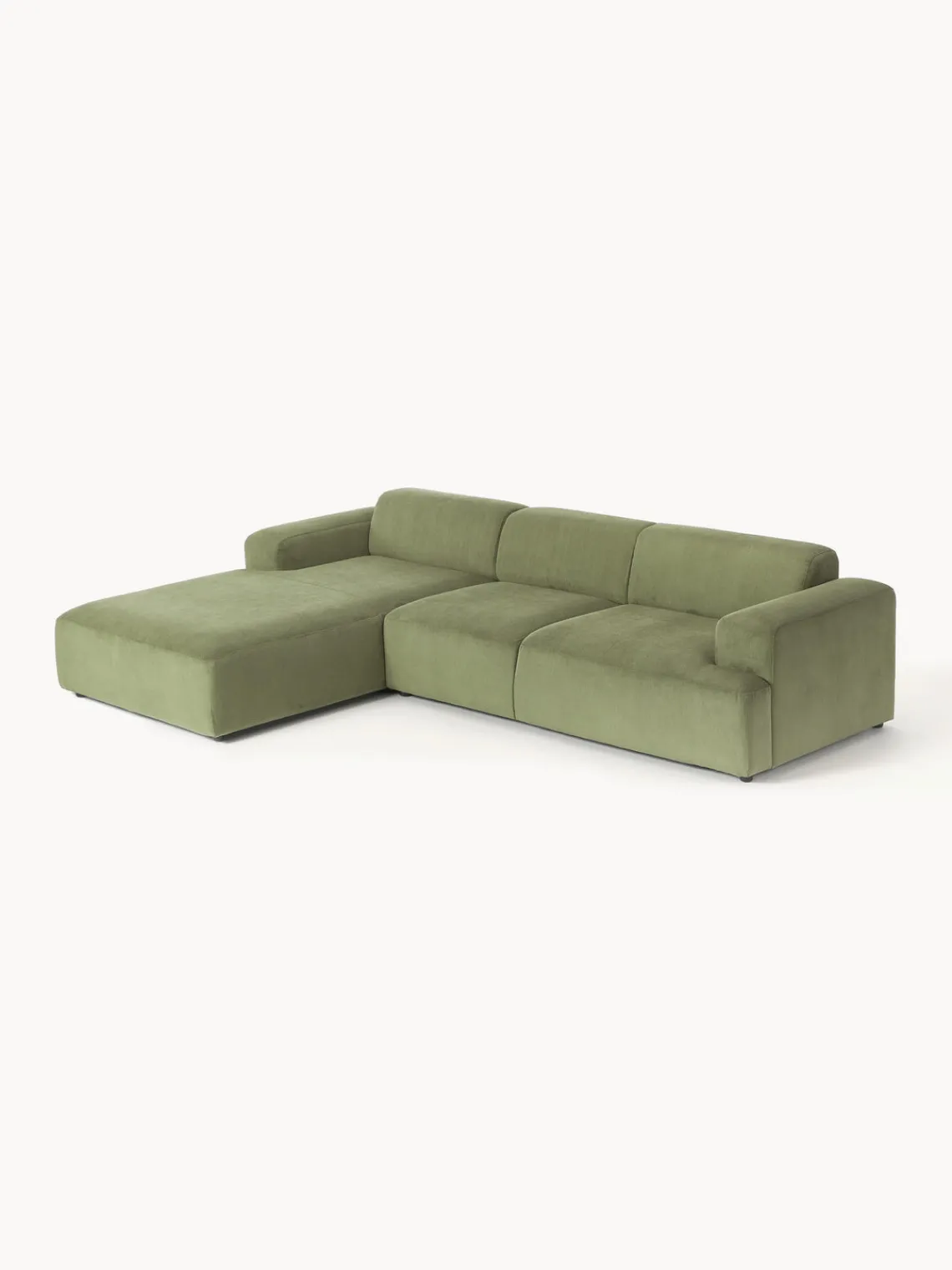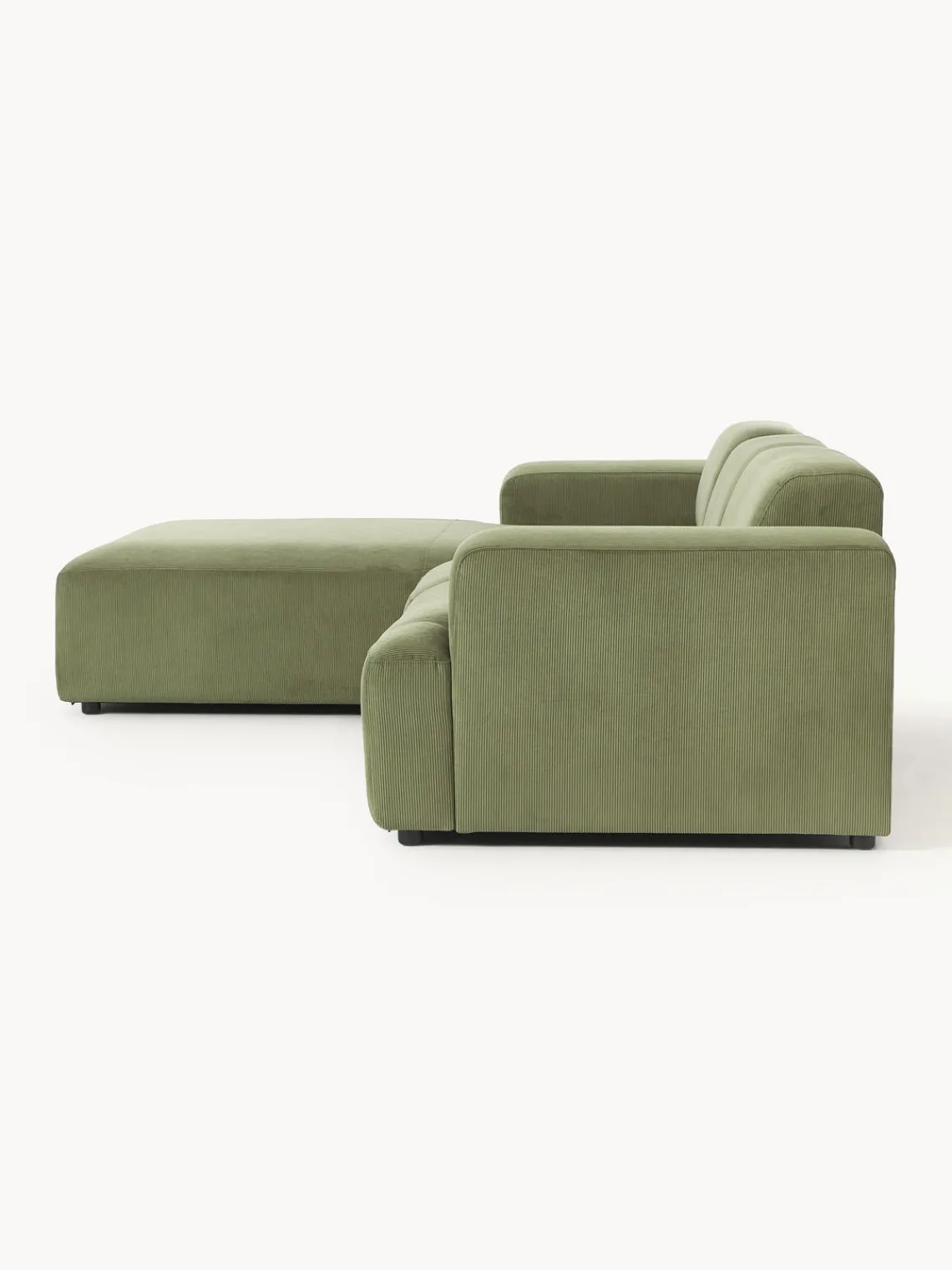 La chaise longue está en el lado izquierdo cuando estás frente al sofá.