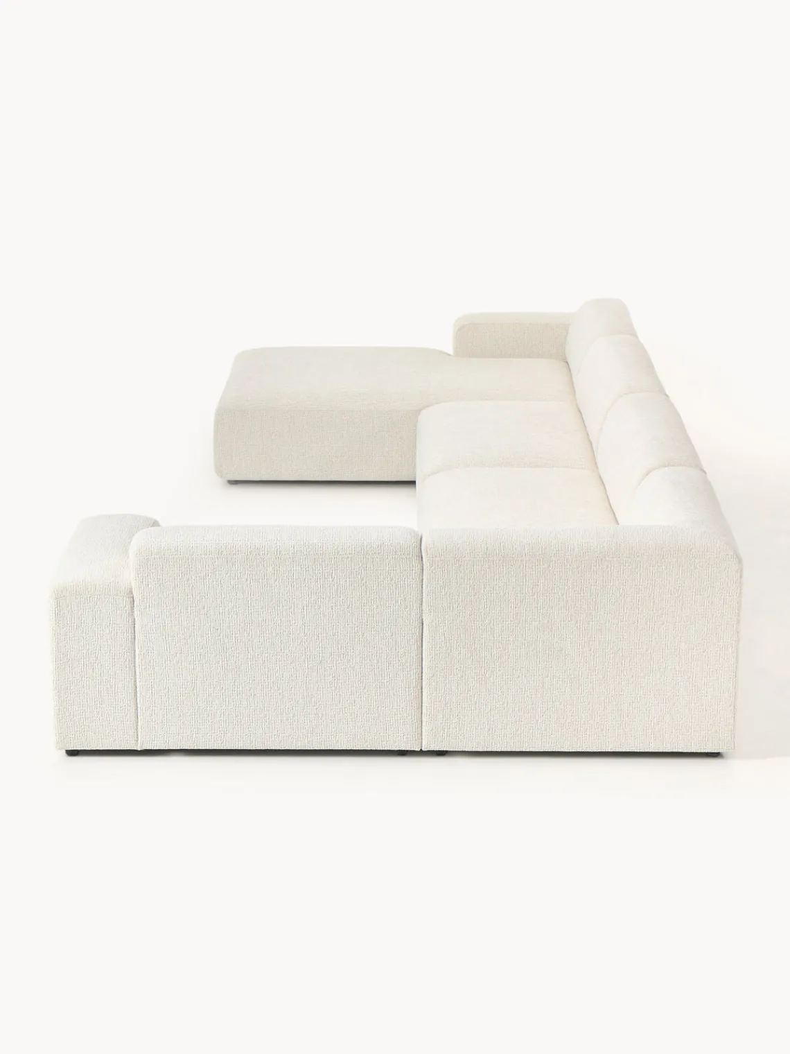 La chaise longue está en el lado derecho cuando estás frente al sofá.