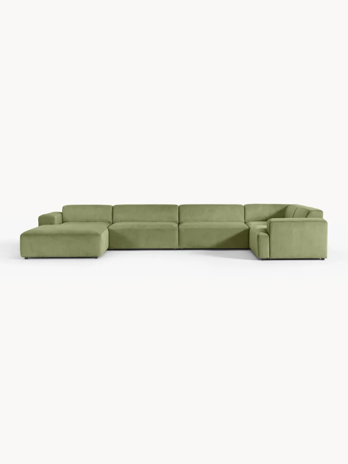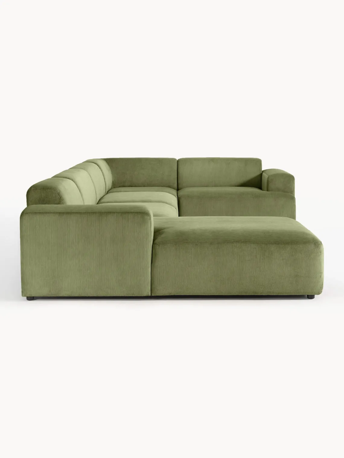 La chaise longue está en el lado derecho cuando estás frente al sofá.