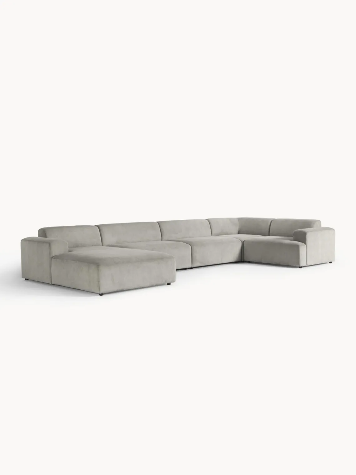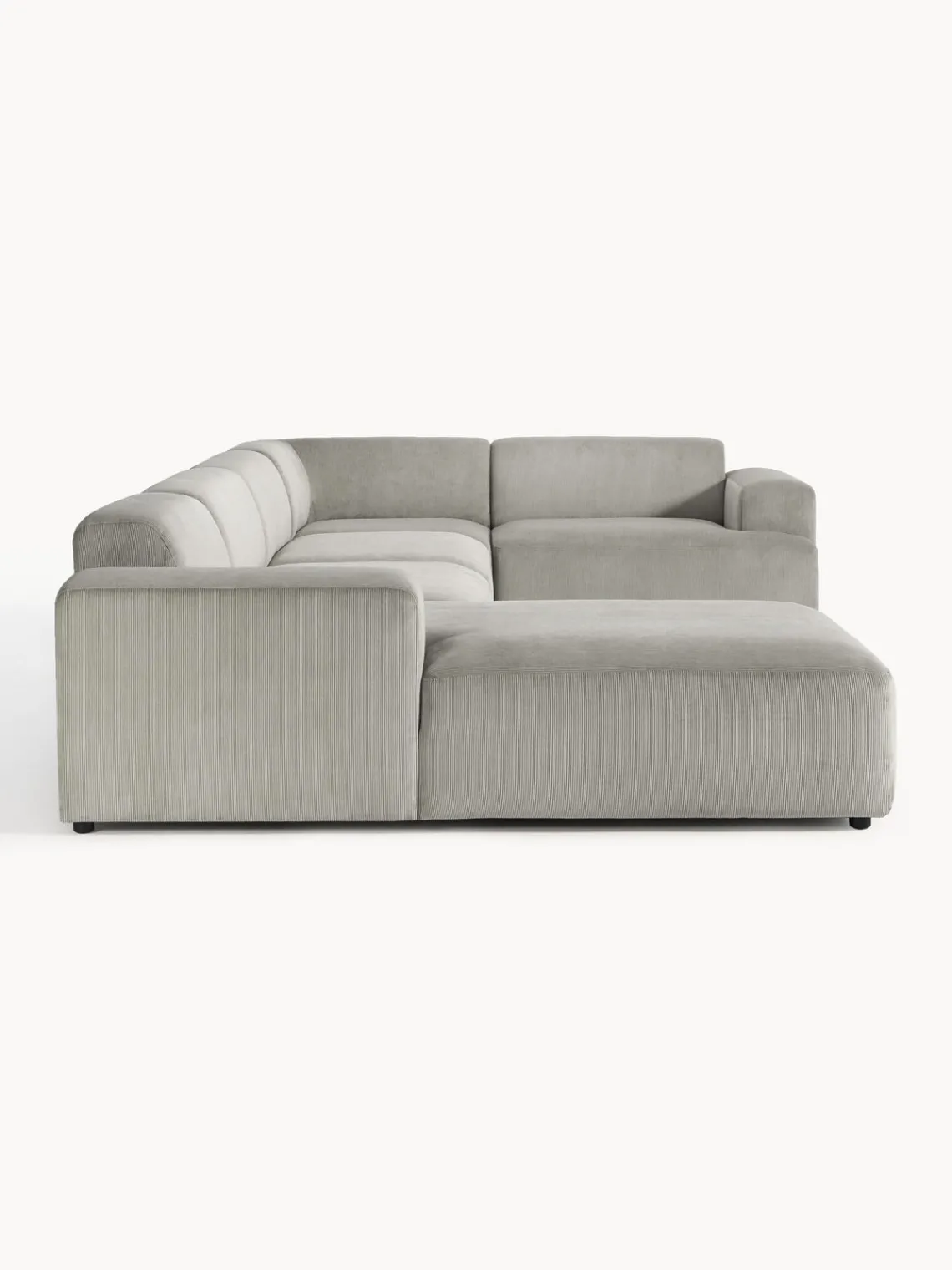 La chaise longue está en el lado derecho cuando estás frente al sofá.