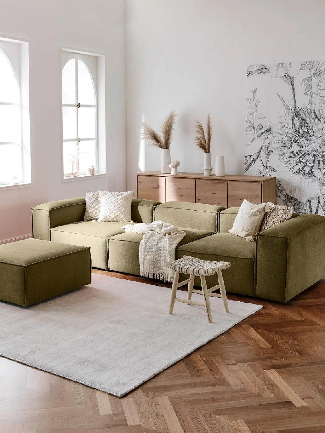 También puedes descubrir otros productos a juego en nuestra gama que se adaptan perfectamente a LENNON: la consola LANA no solo ofrece espacio de almacenamiento adicional, sino que también es un elemento decorativo que se adapta exactamente a las dimensiones de LENNON. El taburete LENNON con bandeja de madera se puede utilizar de forma flexible como mesa de centro o como elemento intermedio en el sofá, para conseguir un aspecto elegante y espacio de almacenamiento práctico. No te olvides del complemento perfecto: cojines de sofá en todos los tejidos y colores de LENNON para un look perfecto, ya sea uniforme o en un estilo mix & match.