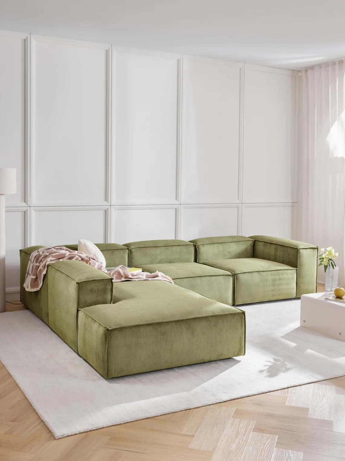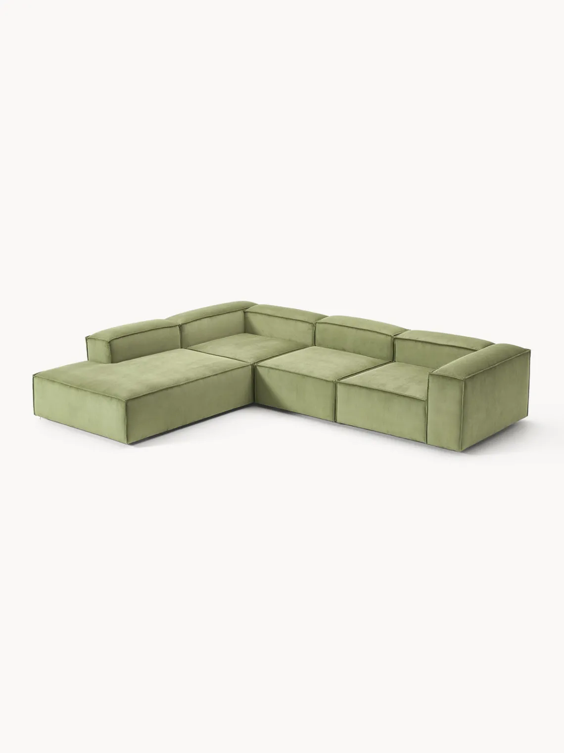 Los cuatro módulos se pueden combinar a tu gusto para crear tu sofá. Se entrega en cuatro partes, que se pueden juntar individualmente mediante enganches en la parte inferior de los módulos.