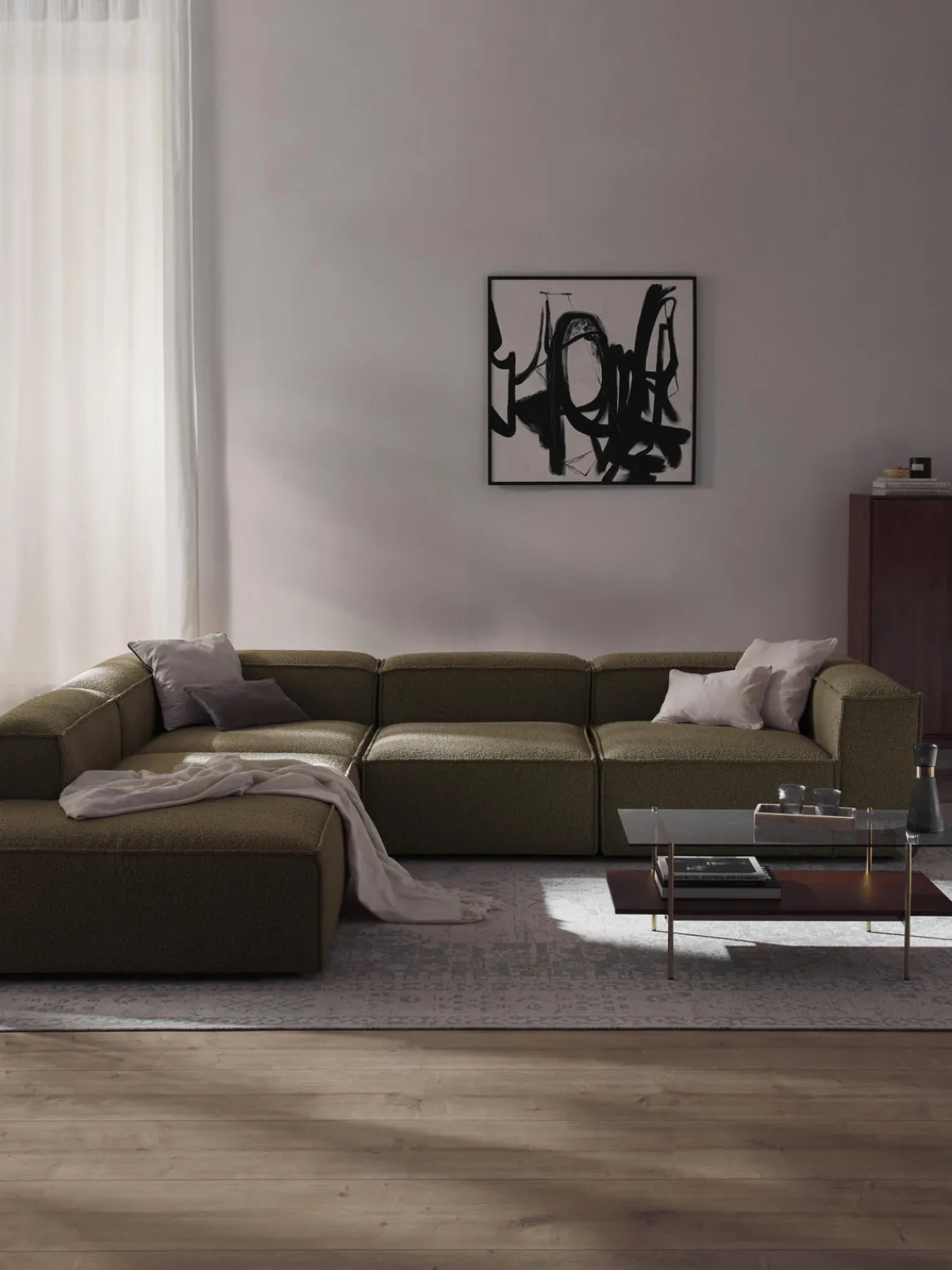 También puedes descubrir otros productos a juego en nuestra gama que se adaptan perfectamente a LENNON: la consola LANA no solo ofrece espacio de almacenamiento adicional, sino que también es un elemento decorativo que se adapta exactamente a las dimensiones de LENNON. El taburete LENNON con bandeja de madera se puede utilizar de forma flexible como mesa de centro o como elemento intermedio en el sofá, para conseguir un aspecto elegante y espacio de almacenamiento práctico. No te olvides del complemento perfecto: cojines de sofá en todos los tejidos y colores de LENNON para un look perfecto, ya sea uniforme o en un estilo mix & match.