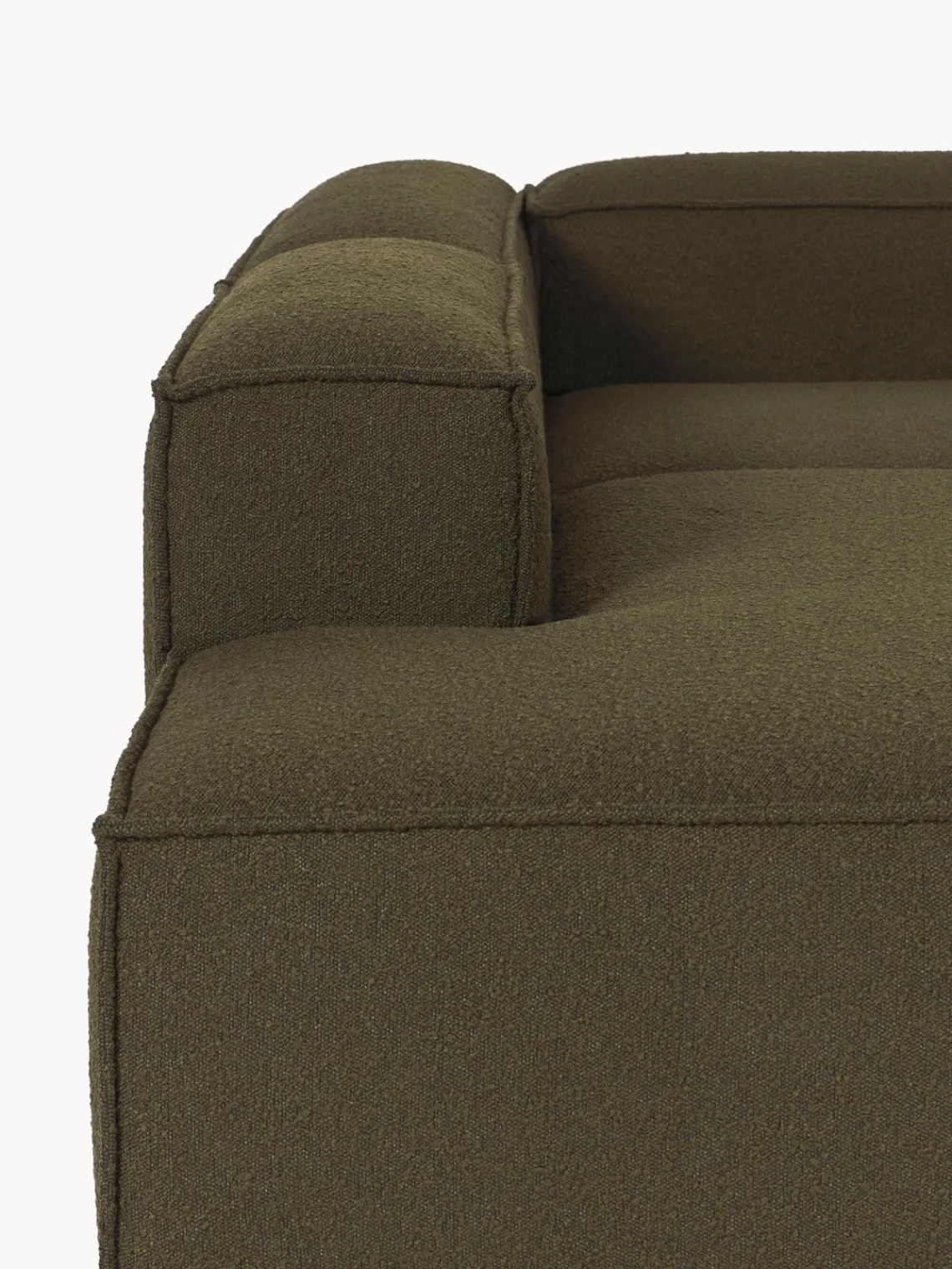 Los cuatro módulos se pueden combinar a tu gusto para crear tu sofá. Se entrega en cuatro partes, que se pueden juntar individualmente mediante enganches en la parte inferior de los módulos.