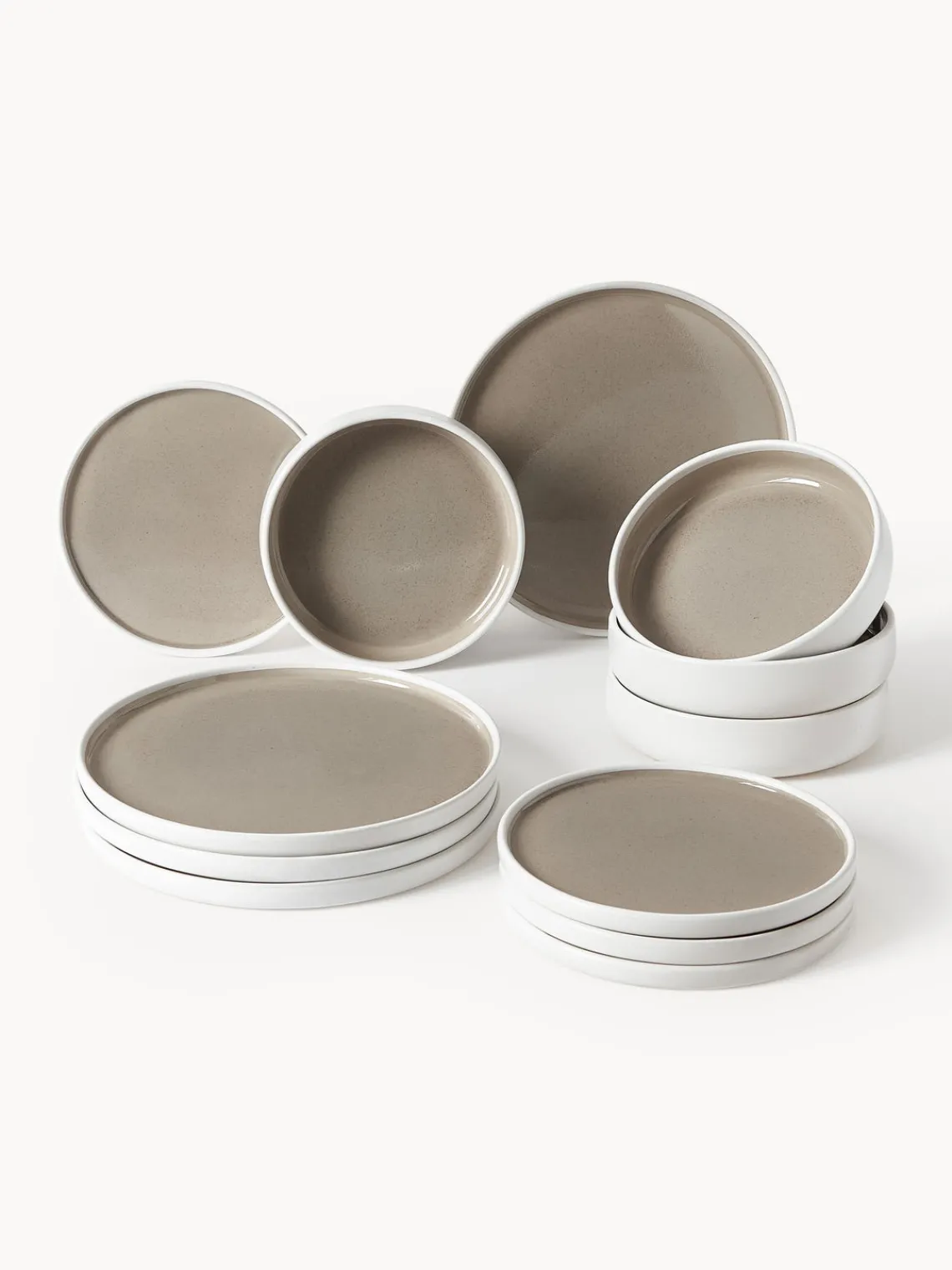 Vajilla que consta de cuatro platos llanos, cuatro platos postre y cuatro boles.