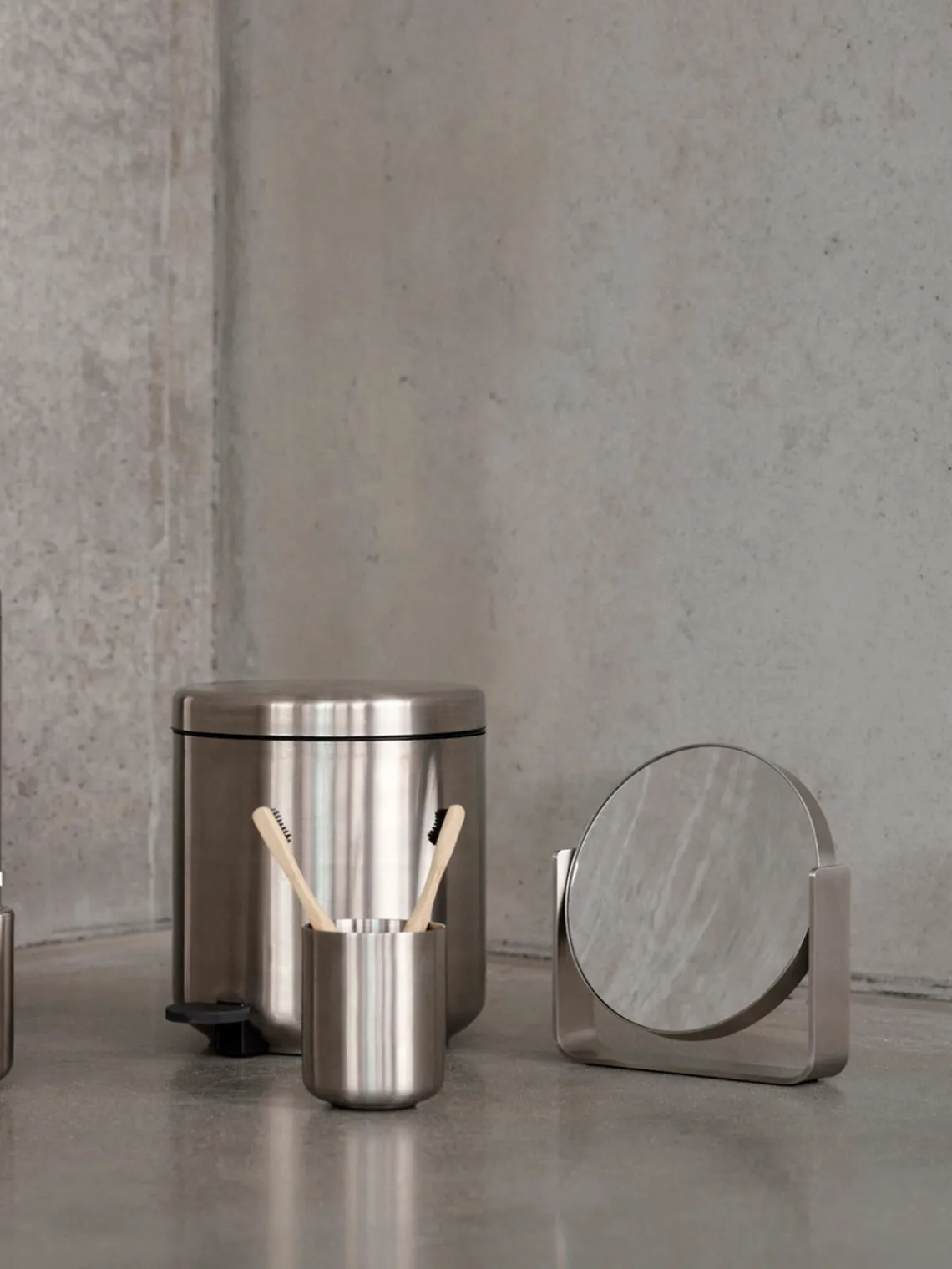 Zone Denmark Espejo tocador redondo de acero inoxidable Ume^ Espejos De Maquillaje|Jarrones